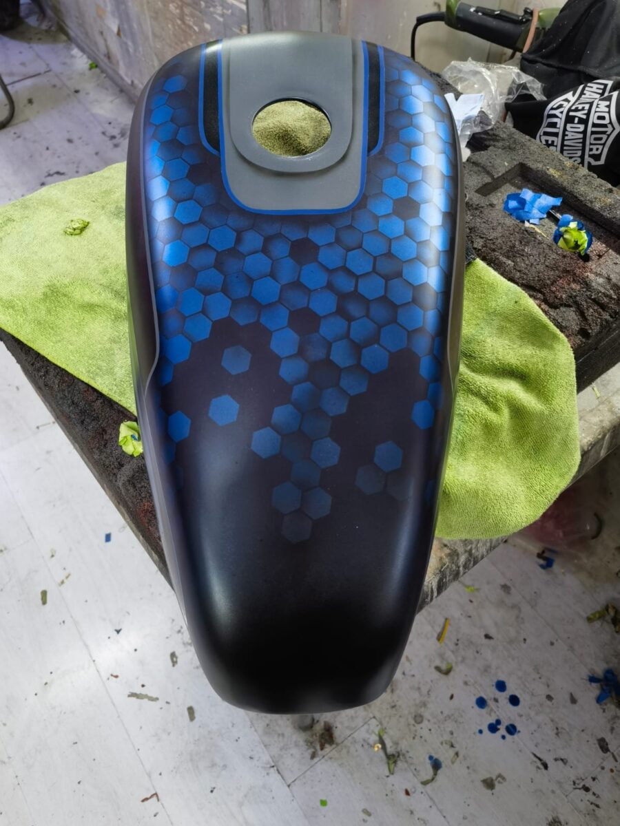 Edgar confía en la línea Vibrance de PPG, un sistema premium reconocido por su calidad, profundidad de color y consistencia. Es una línea utilizada en proyectos de alto nivel y asociada a marcas icónicas del mundo automotriz y de motocicletas, como Harley-Davidson.