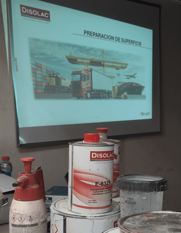 Top Color presentó distintas opciones de PPG para que el cliente pudiera comparar y evaluar en condiciones reales: MTK, AUE 360, Esmalte acrílico Autolux. Durante el proceso, técnicos y aplicadores de PPG estuvieron presentes junto a Top Color, mostrando el comportamiento de cada sistema y resolviendo dudas directamente en campo.