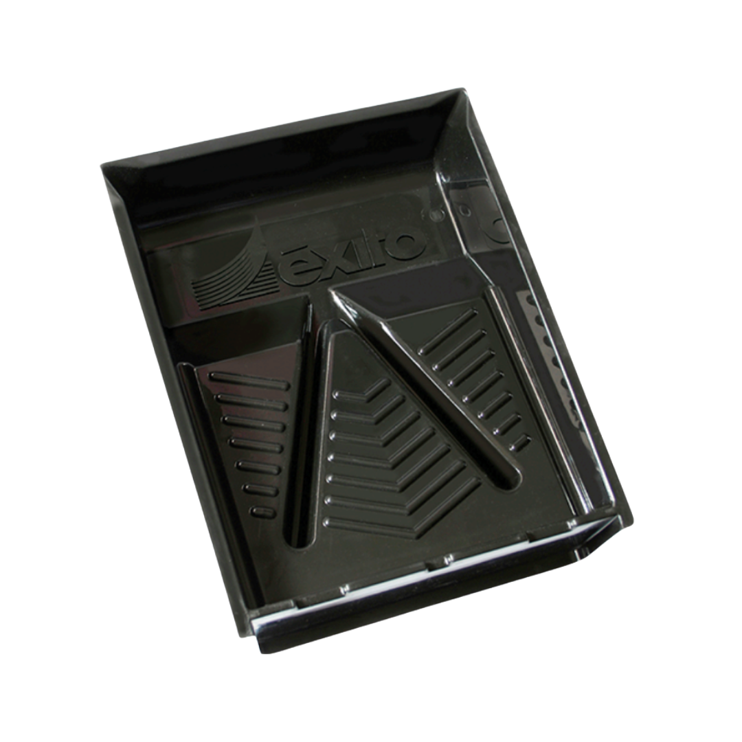Charola diseñada para contener recubrimientos durante la aplicación, permitiendo cargar rodillos de forma uniforme y facilitando el trabajo en proyectos generales.