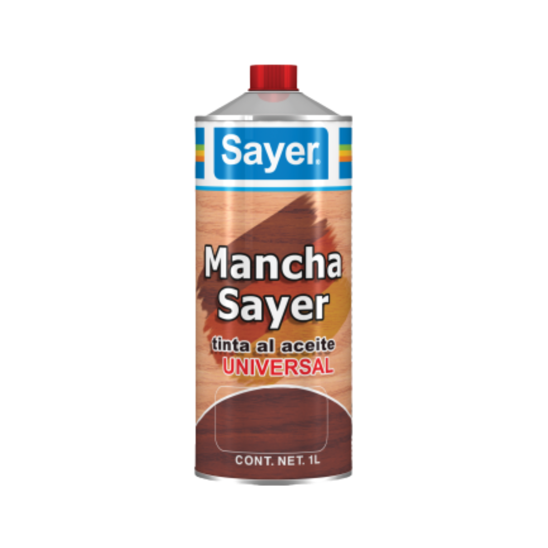 Línea Manchasayer, elaborada con pigmentos de alta calidad y libres de plomo, las cuales proporcionan una tonalidad y transparencia muy particular, marcando de manera importante el poro, dejando una apariencia uniforme y clásica. Cuenta con una extensa gama de colores. Se recomienda para usarse como tintas directas a la madera, de uso universal para procesos de nitro, poliuretano, poliéster y acrílicos.