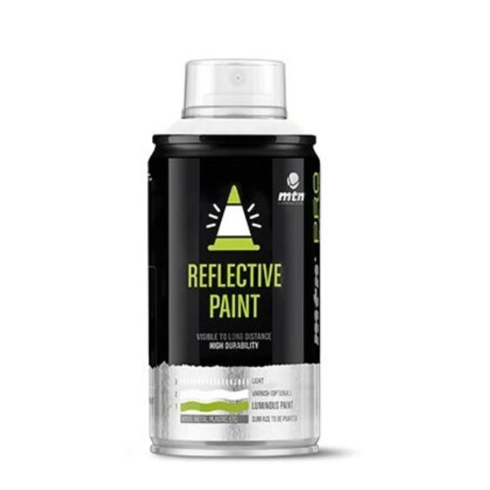 El MTN WEPRO Pintura reflectante es un aerosol de 150 ml cuya pintura está formulada con resinas y pigmentos especiales que permiten reflejar una luz en la misma dirección de incidencia a su superficie. La potencia de reflexión la hace recomendada para marcas viales o en cualquier otra situación en la que la escasez de luz requiera el efecto reflectante de un objeto o señal.
