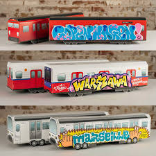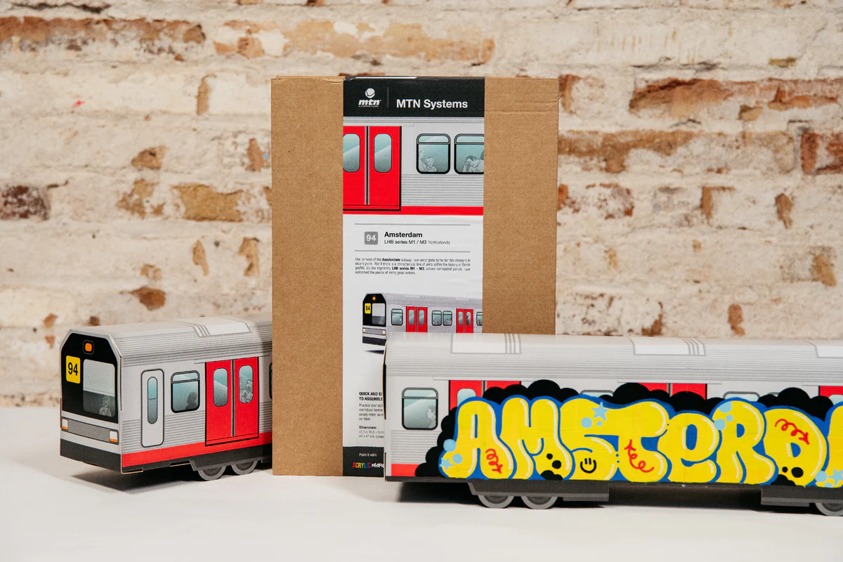 Los MTN System son vagones de metro en miniatura impresos en cartón firme de alta calidad que se pueden ensamblar y pintar. Estas réplicas de los sistemas de metro y tren más populares del mundo te permiten practicar tus bocetos, reproducir piezas históricas o simplemente disfrutar de tus creaciones emulando el espíritu del grafiti más radical.